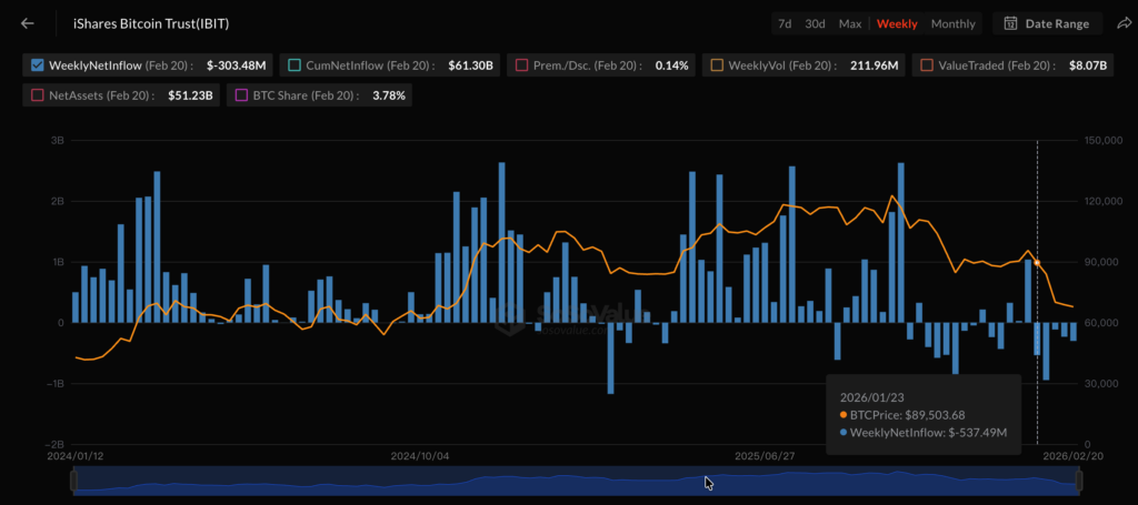 在所有比特幣現貨 ETF 中,貝萊德(BlackRock)旗下的 iShares Bitcoin Trust(IBIT)受創最重,五週內淨流出高達 21.3 億美元,佔整體流出金額的逾 56%。這對於曾被譽為「 史上最成功 ETF 發行 」、上市首年就吸金超過 500 億美元的 IBIT 而言,無疑是一記警鐘。
