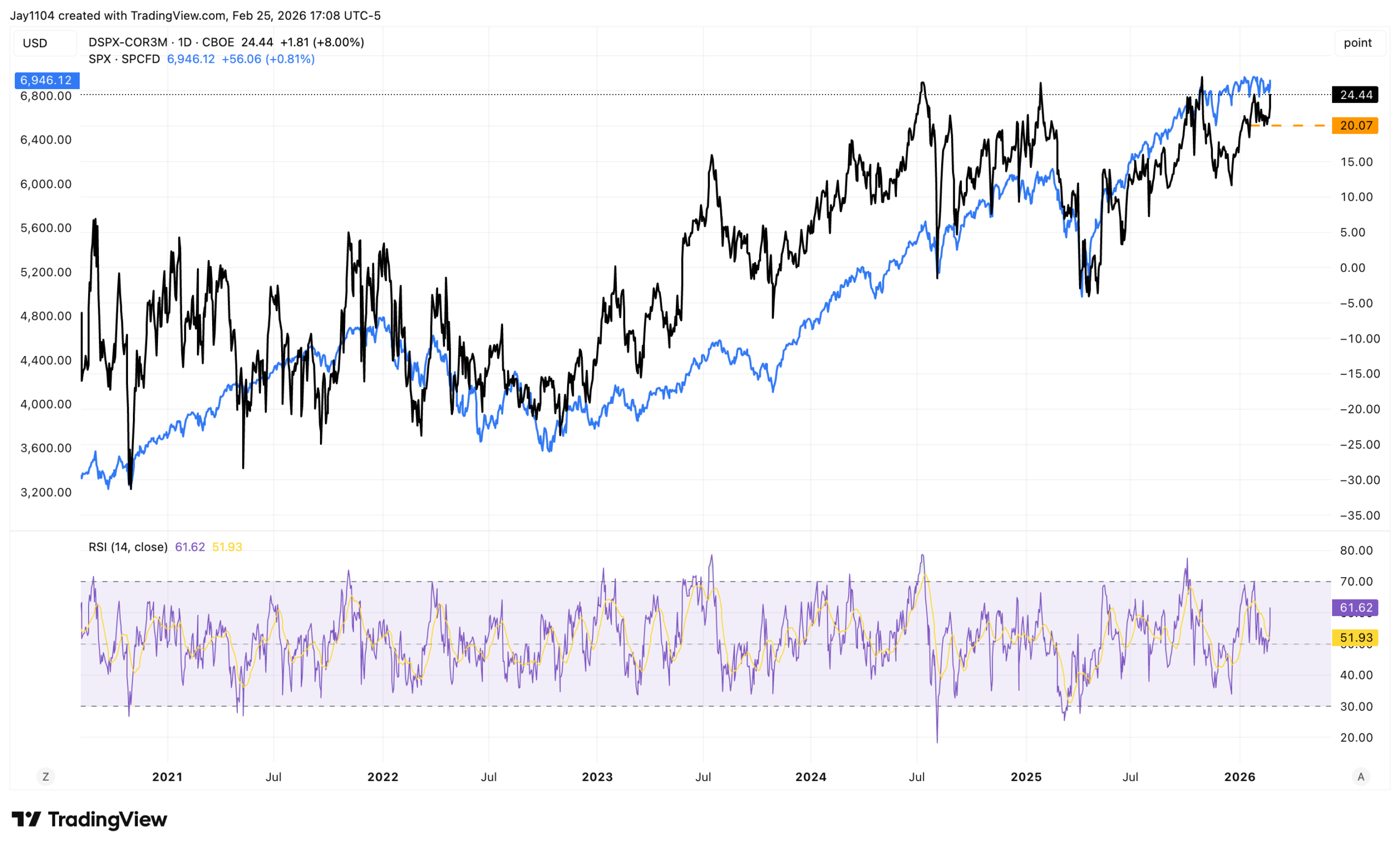 当前的一个关键观察指标是三个月离散度与相关性利差(DSPX-COR3M)。当这个利差处于高位时,意味着个股走势分化严重(离散度高),而股票间的联动性(相关性)较低。历史经验表明,这种状态往往会向均值回归。也就是说,个股的隐含波动率会逐渐向大盘指数的波动率靠拢,导致离散度下降,个股间的相关性上升。
