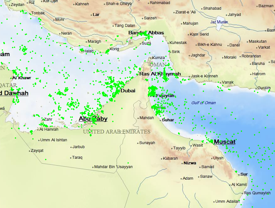 图:船舶跟踪数据显示,当地时间 3 月 1 日,过航霍尔木兹海峡的船舶数量较此前大幅减少|图源:搜船网