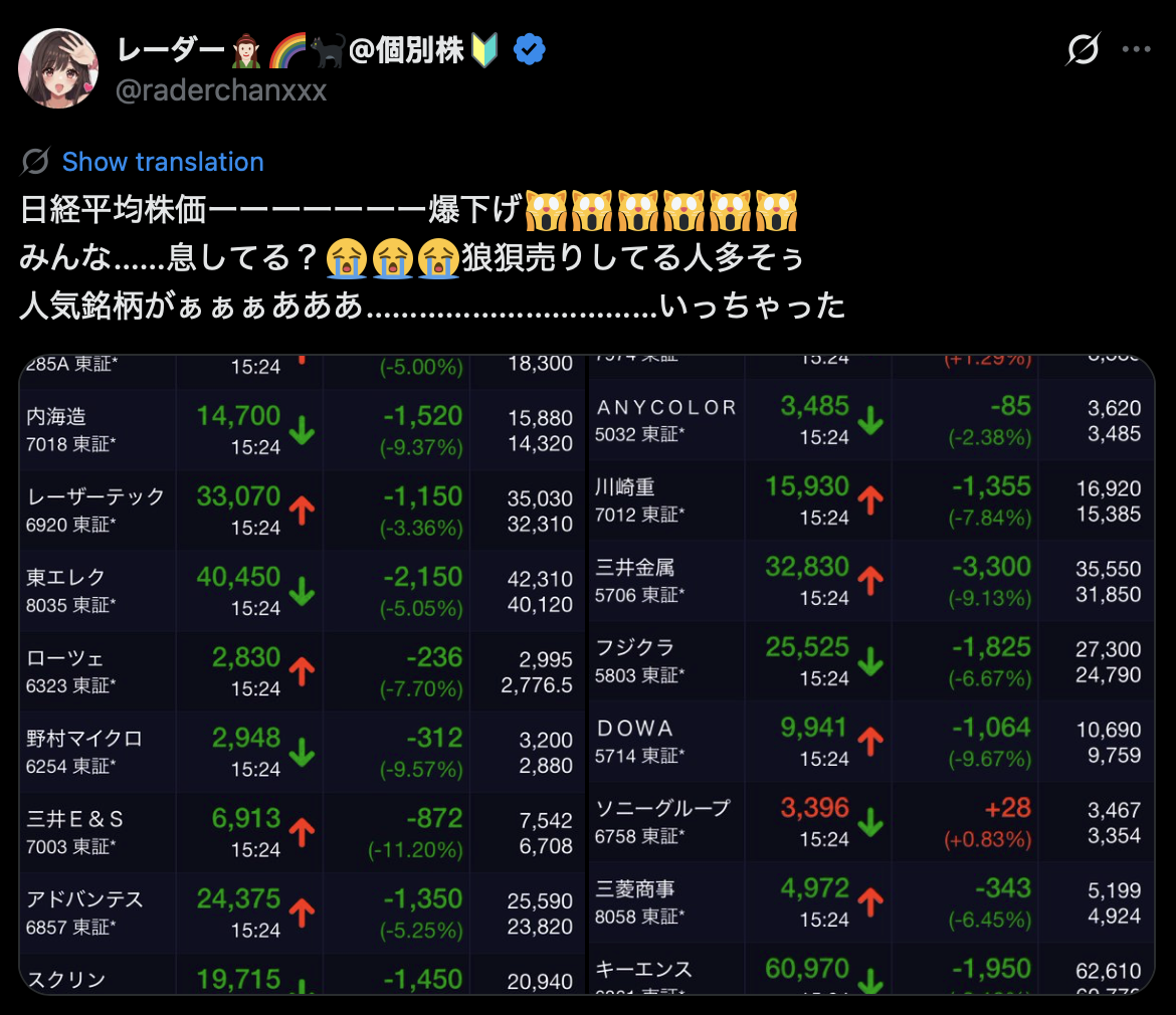 日本社群平台 X 上,湧現大量 NISA 投資族喊虧的貼文。有人說「我以為 NISA 是安全的。」有人說:「政府叫我們投資,沒說會跌成這樣。」更有人直接貼出帳戶虧損截圖,問「該停損嗎還是繼續等」。