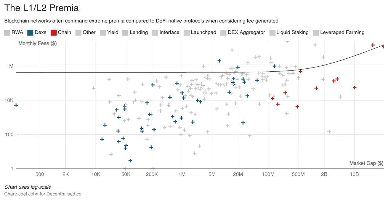 到现在,我还没提底层公链。因为它们的故事完全不同:它们是新颖性溢价的牺牲品,现在正走向折价。
