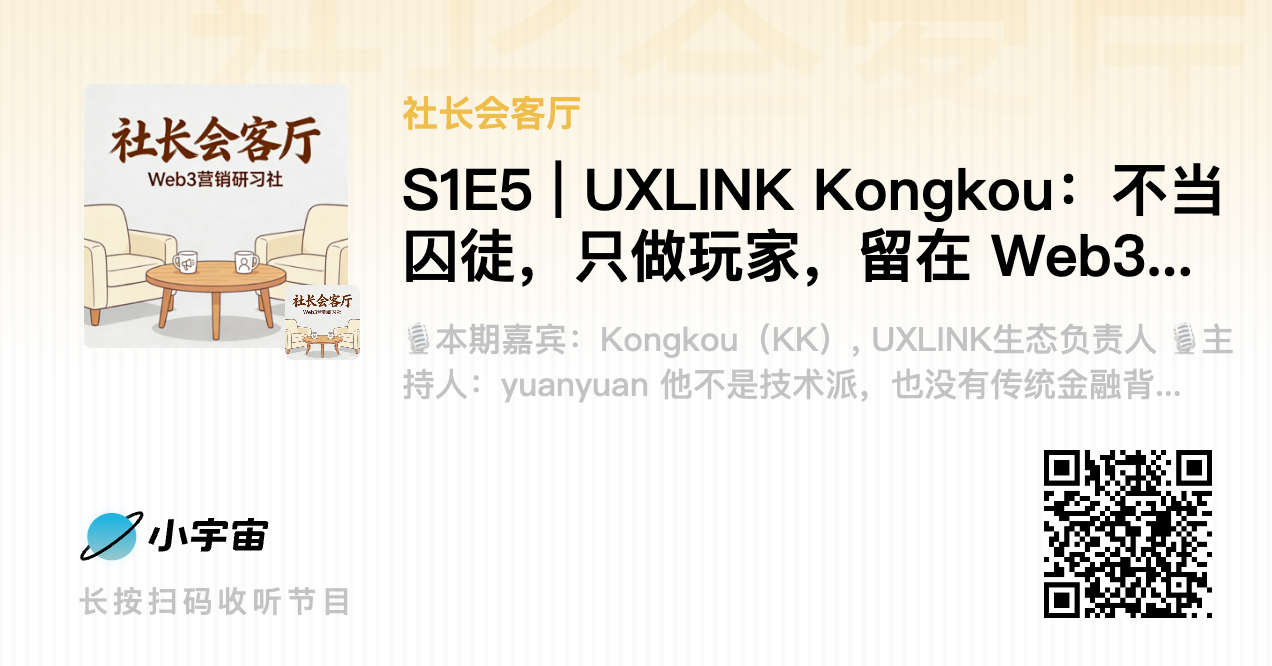 本期《社长会客厅》,我请来了 UXLINK 生态负责人 Kongkou(KK)。