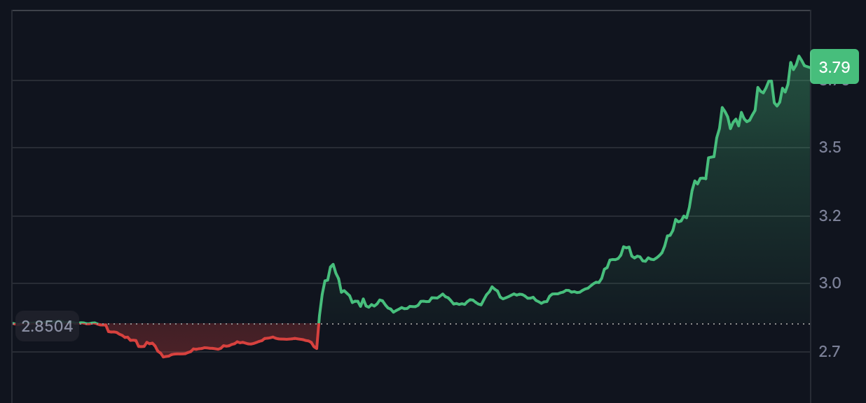 TRUMP 代幣 24 小時暴漲逾 32%,現報 3.9 美元,因川普宣布將於 4 月 25 日在海湖莊園舉辦午宴,前 297 名時間加權平均持倉者可獲邀出席,前 29 名更可參加 VIP 香檳招待會。