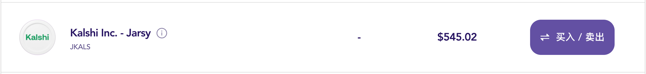 Jarsy 平台,股票盘前标价为 545 美元左右。 (相较于我们 1 个月前在 《Kalshi 交易量续破新高,盘前股价多少合理?》 一文中的 504 美元已增长超 40 美元,涨幅达 8.1%)
