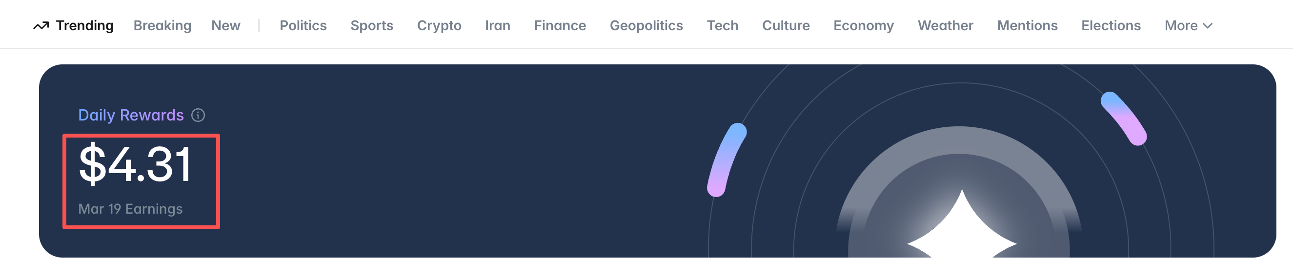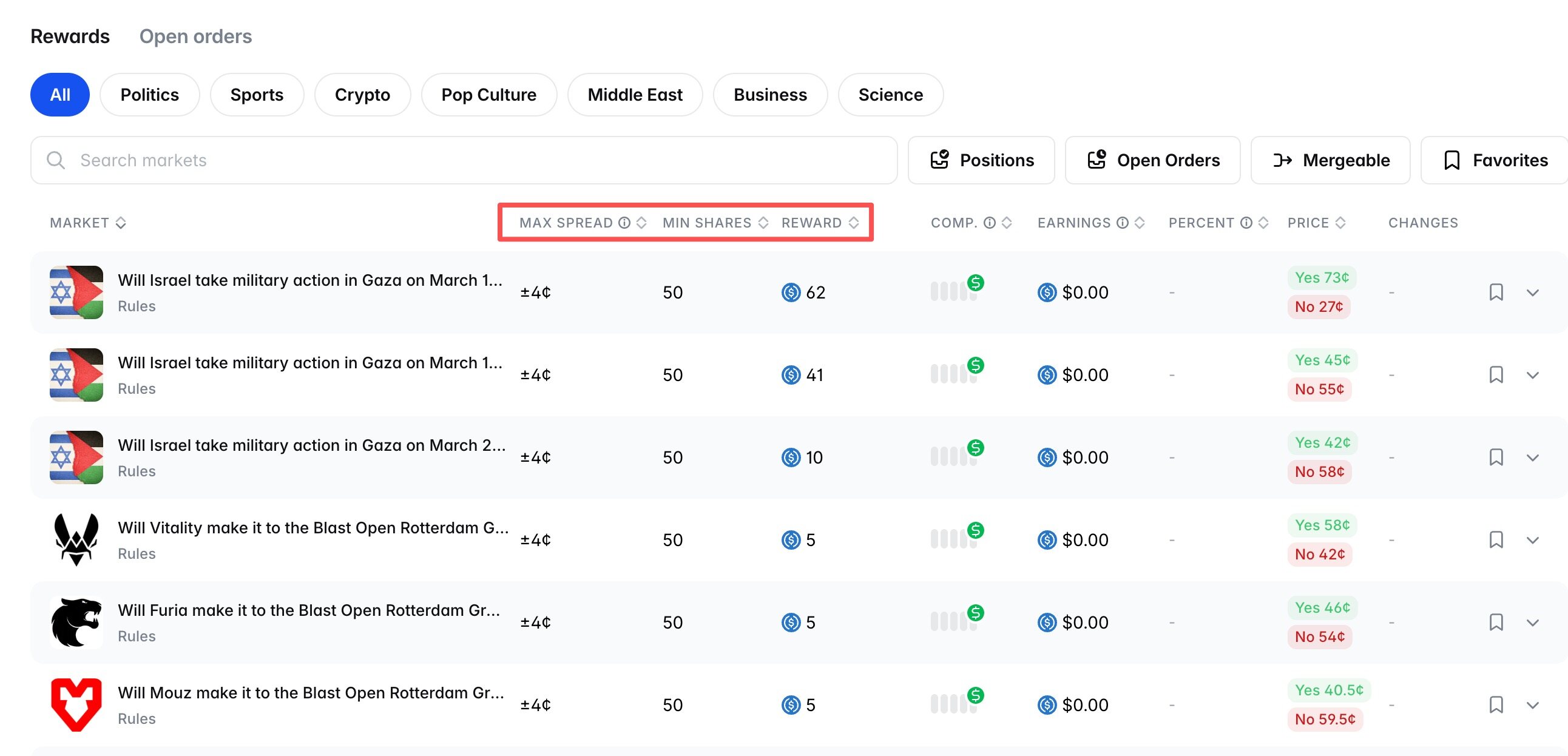所谓“LP 奖励”,是 Polymarket 为了改善自身平台的流动性状况,针对部分预测市场所发放的真金白银补贴额,所有奖励情况可在官方的 Rewards( https://polymarket.com/rewards )实时查看。