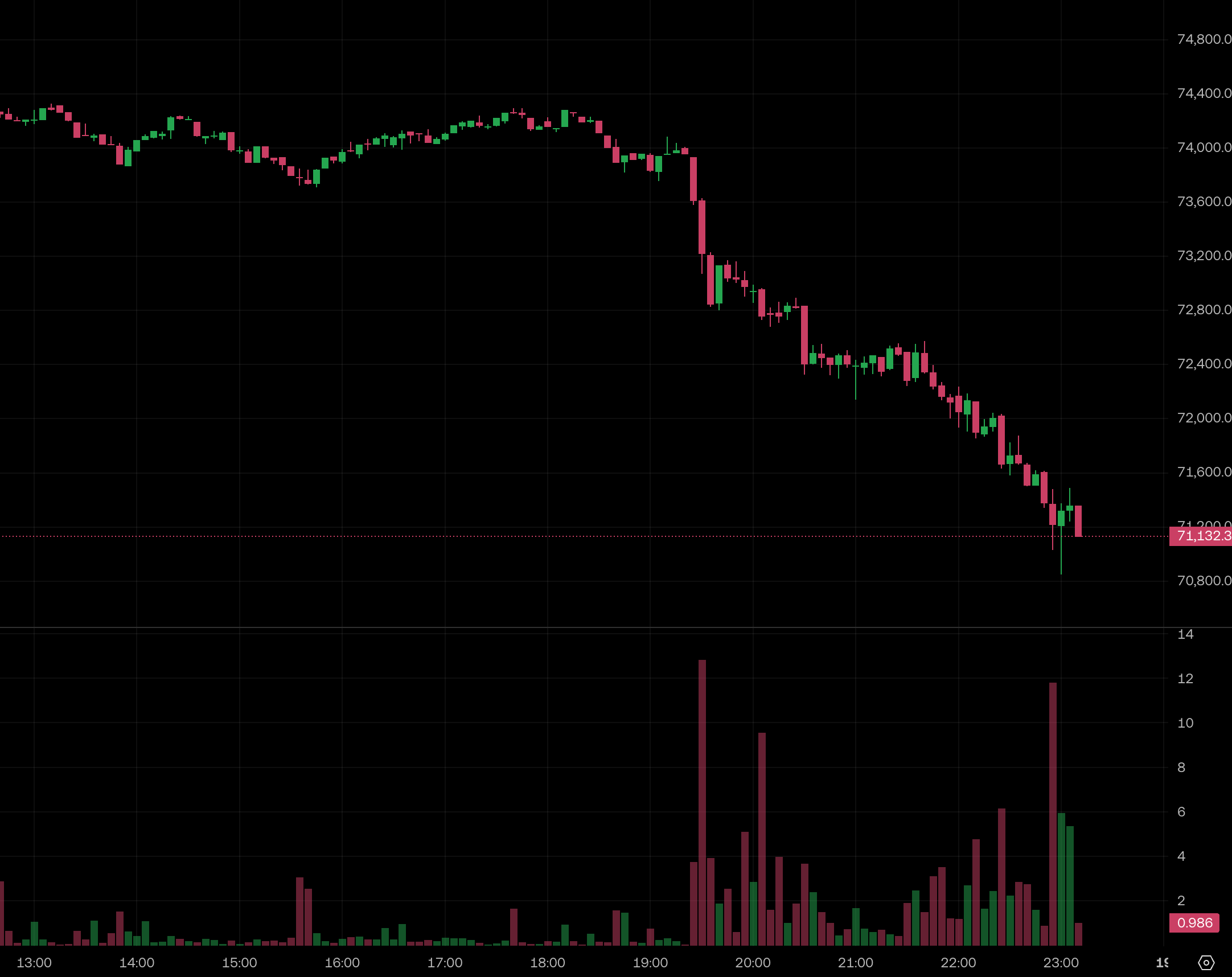 加 密貨幣市場在今日(18 日)晚間遭遇強大阻力。繼早前 PPI 數據釋放通膨噩耗後,市場情緒在深夜 11 點進一步崩潰。比特幣(BTC)短線跳水,最低觸及 70,800 美元附近;以太坊(ETH)亦未能倖免,失守 2,200 美元關鍵支撐。