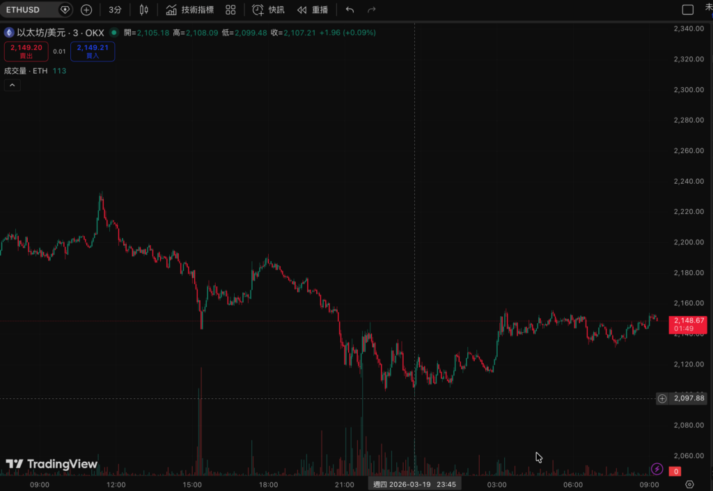 聯準會3月FOMC連兩次按兵不動,鷹派點陣圖重挫市場信心,比特幣兩日從$74,272高點暴跌逾7%至$68,934低點,ETH失守$2,100,全網過去24小時爆倉$4.58億美元、超過12.8萬人遭清算;白銀閃崩逾10%、黃金失守$4,600,傳統避險資產同步淪陷,恐懼指數跌至23「極度恐懼」。