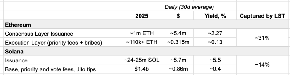 公链原生资产的质押收益主要分为两类:网络增发奖励与 MEV 收益(优先费 + 贿赂)。
