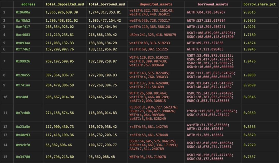 由于仅 WSETH 一种生息代币可作为抵押品,核心用途为经典循环策略,占借贷总量约 50%,是储备金收入的主要来源,主要参与者包括 Ipor、Threehouse、Mellow、Summerfi 等机构。