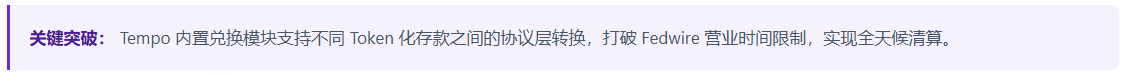 Token 化存款是将银行存款债权在区块链上进行数字化的金融资产。这类资产本身存在一个现实障碍:美联储的 Fedwire 有固定营业时间,无法在非工作日或夜间处理清算。