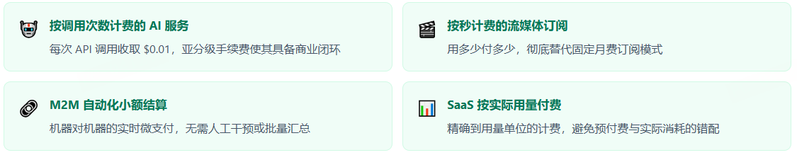 信用卡处理费通常包含每笔约0.2美元的固定费用加1.5%至3%的比例费,使得金额低于1美元的交易在商业上不具可行性——这是"小额支付"市场长期存在空白的根本原因。Tempo约0.001美元/笔的手续费设计目标,使以下场景首次具备商业可行性: