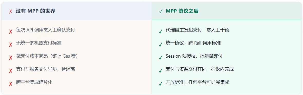 MPP(Machine Payments Protocol,机器支付协议)是由Stripe与Tempo联合设计的开放支付标准,被业界称为"支付界的OAuth"。其核心目标是为自主AI代理提供标准化的、无需人工干预的支付能力。