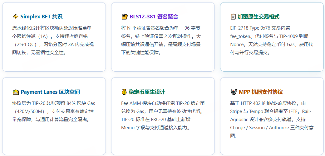 Tempo采用专用型Layer-1架构,其设计哲学是"支付优先"——链上每一层的技术决策均以最优化支付场景为目标,而非通用智能合约平台的泛用性设计。