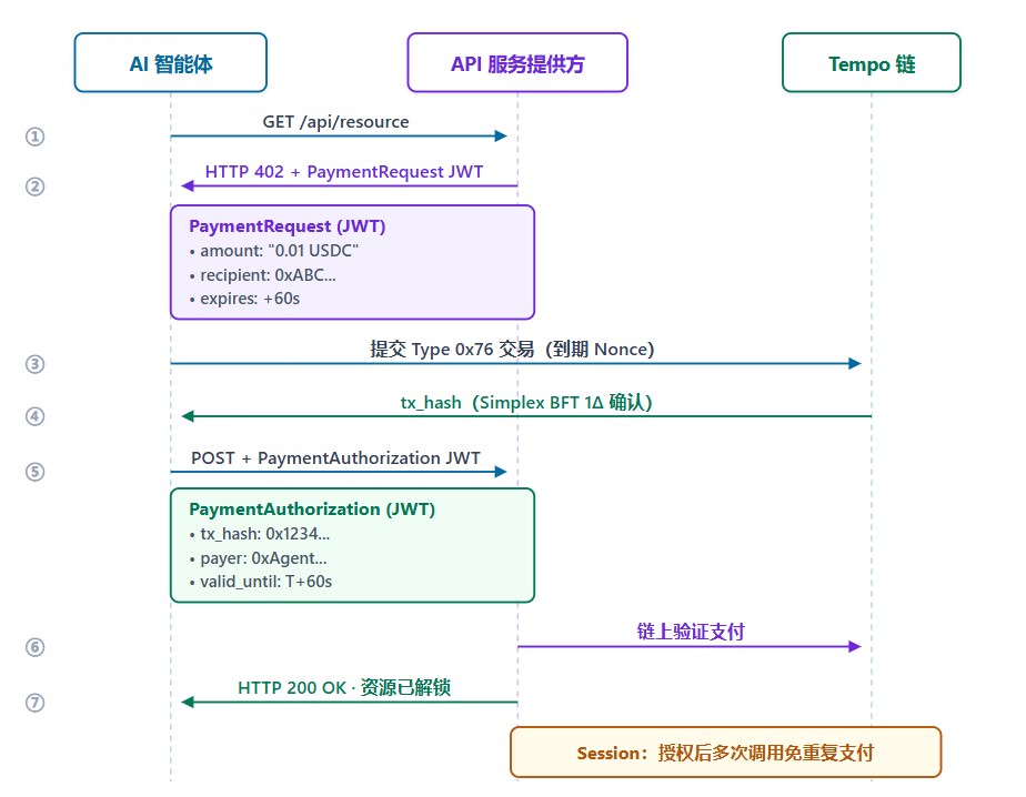 Session机制是MPP协议的核心创新之一,解决了AI代理长时间连续消费资源时的支付效率问题: