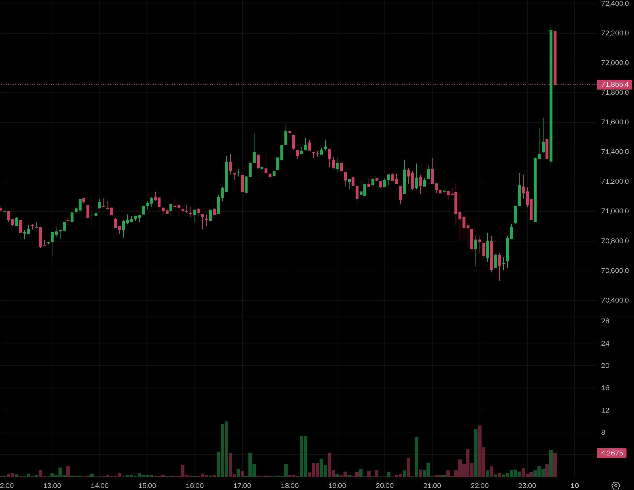 台 灣時間 4 月 9 日晚間 23 點 35 分左右,加密貨幣市場迎來一波強勁的多頭買盤。行情數據顯示,比特幣(BTC)價格迅速拉升,成功突破 72,000 美元大關,展現出強大的上攻動能;同時,第二大加密貨幣以太坊(ETH)也緊跟大盤漲勢,順利站上 2,200 美元關卡。