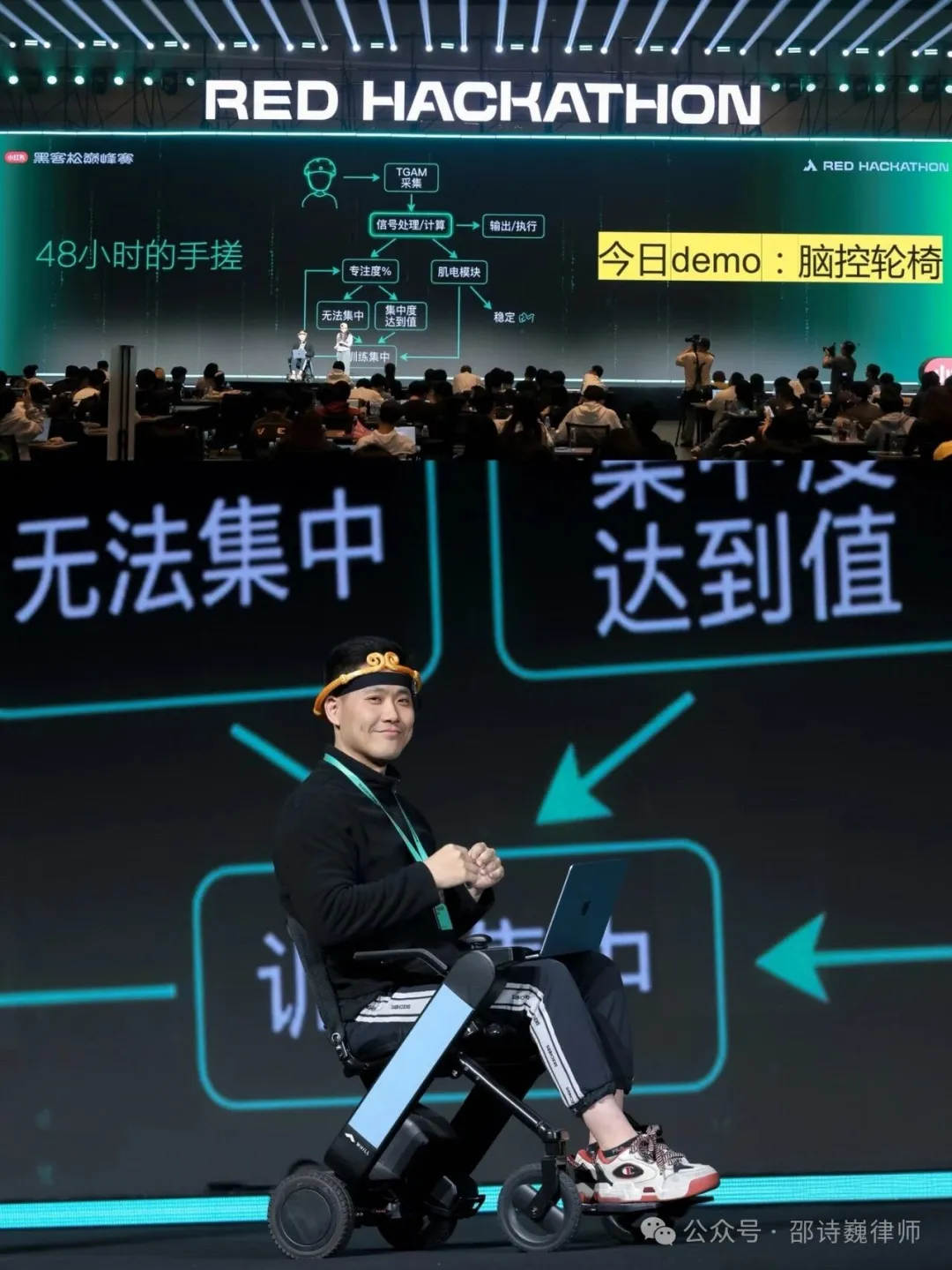 他的妻子"香菇"是团队的"脑洞担当",原本是个网文写手,为了这个项目硬生生跨界成了极客开发者。两个人,一台轮椅,一个金箍棒,48 小时。肥牛在台上说,他想做的不只是一个产品,更是想给那些被困在身体里的人提供一种新的可能——让他们能用最微弱的信号与世界重新建立连接,支撑自己一点点走向康复。