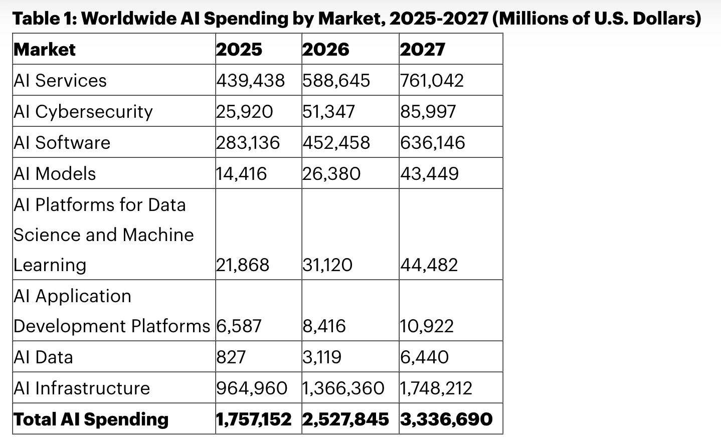 美国市场调研公司 Gartner 的 一份报告 指出,2026 年全球 AI 支出将达到 2.52 万亿美元,同比增长 44%;其中仅 AI 基础设施(包括服务器、加速器、存储和数据中心平台在内)一项预计就将消耗约 1.37 万亿美元,超过总支出的一半。