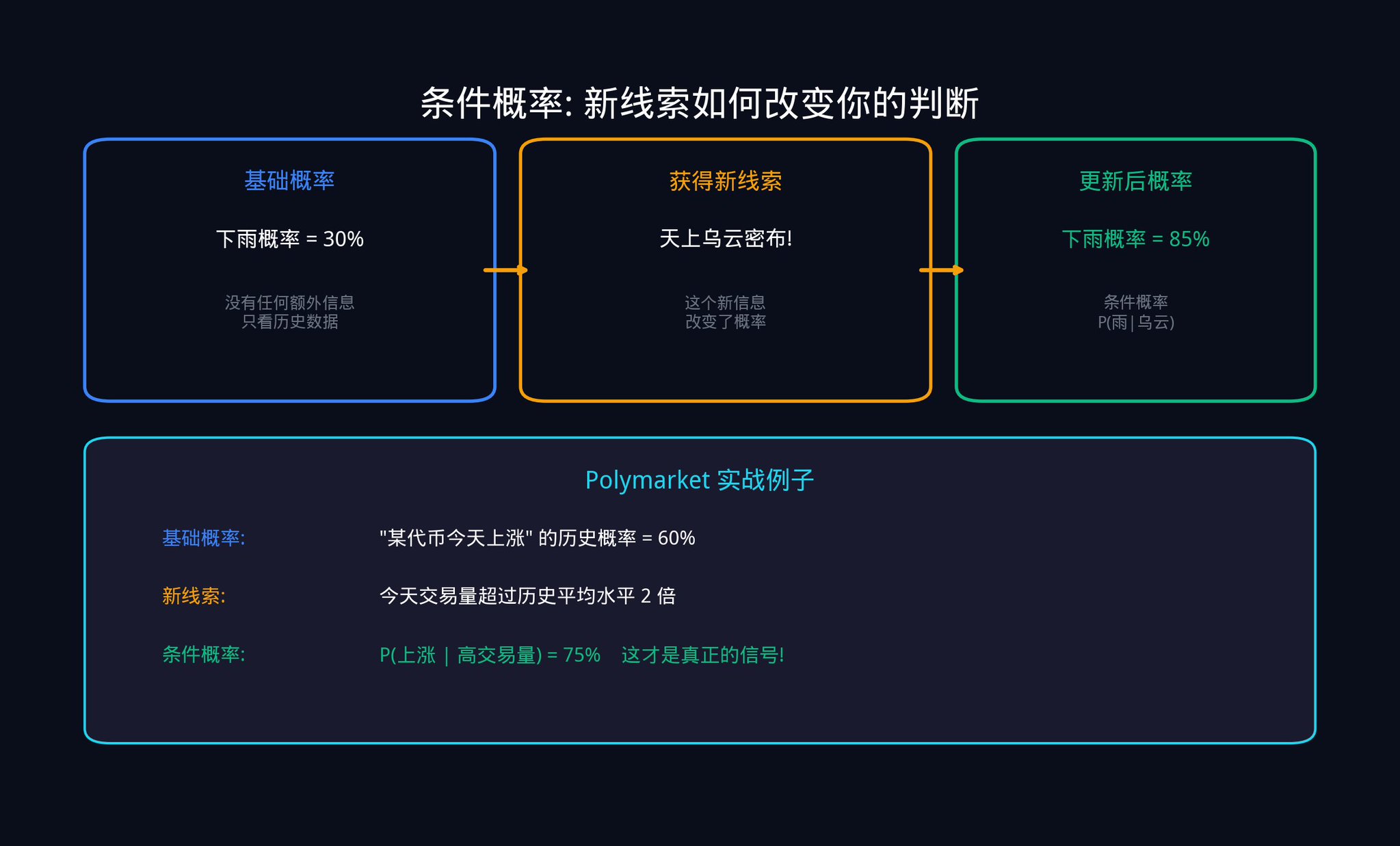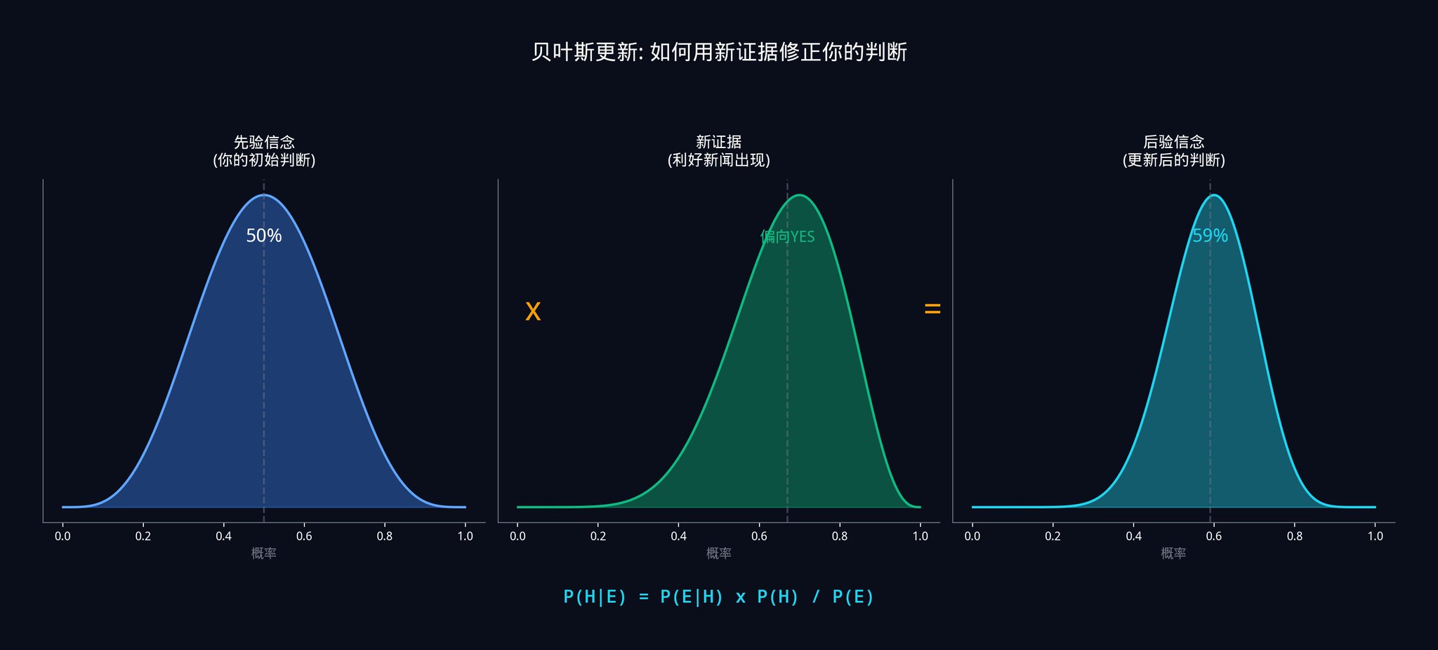 贝叶斯更新的精髓在于,你不是在「猜」一个新概率,而是在用数学精确地计算它。你的每一次判断都有据可依。