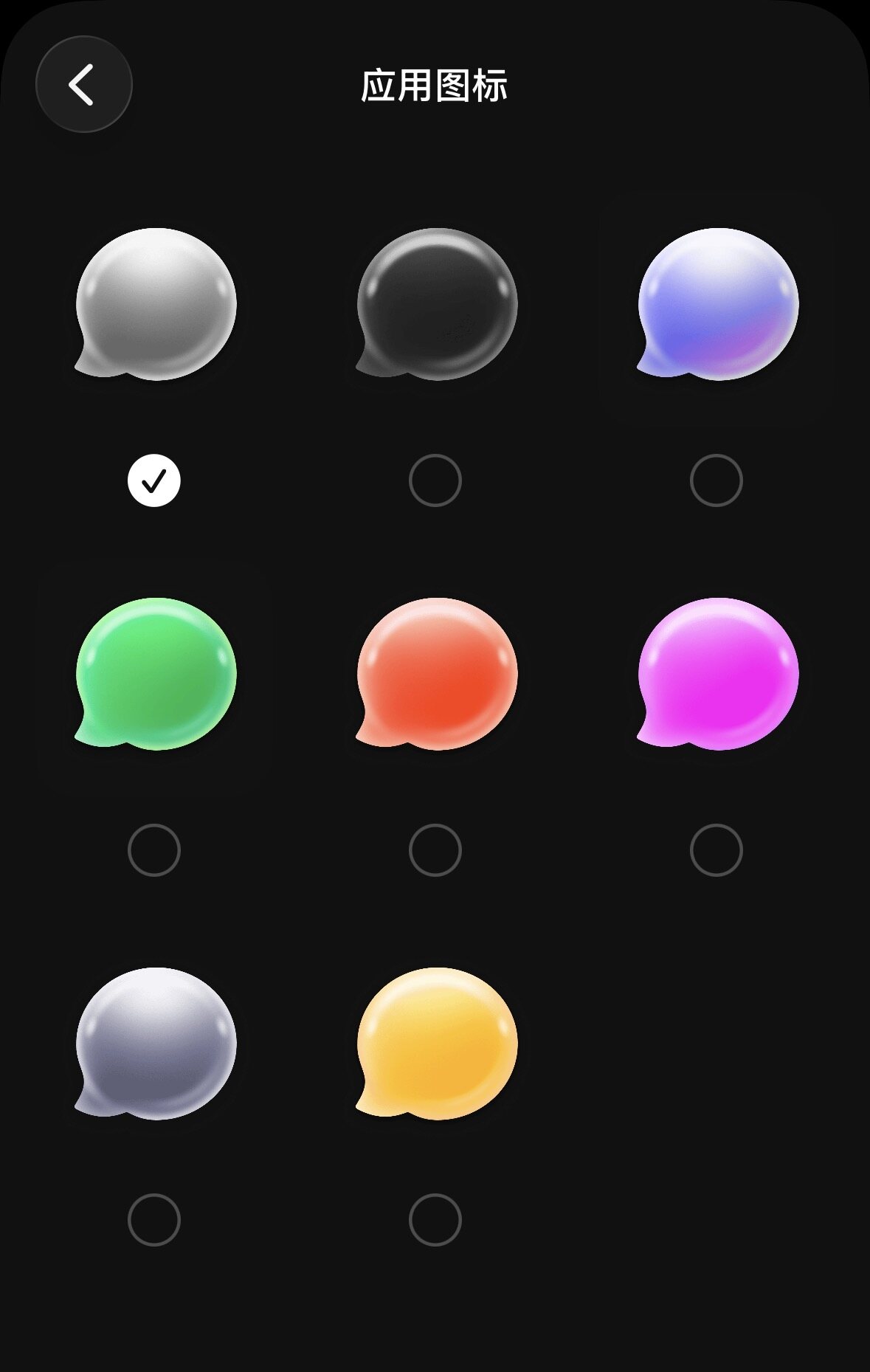 和之前内测版本显示的信息一样,XChat 正式版也准备了白、黑、紫、绿、橙、粉、灰、黄 8 种颜色的图标,供大家切换。虽然只是个很小的功能,但也算是多少给这个主打加密隐私的聊天应用添加了一丝难得的活人感。