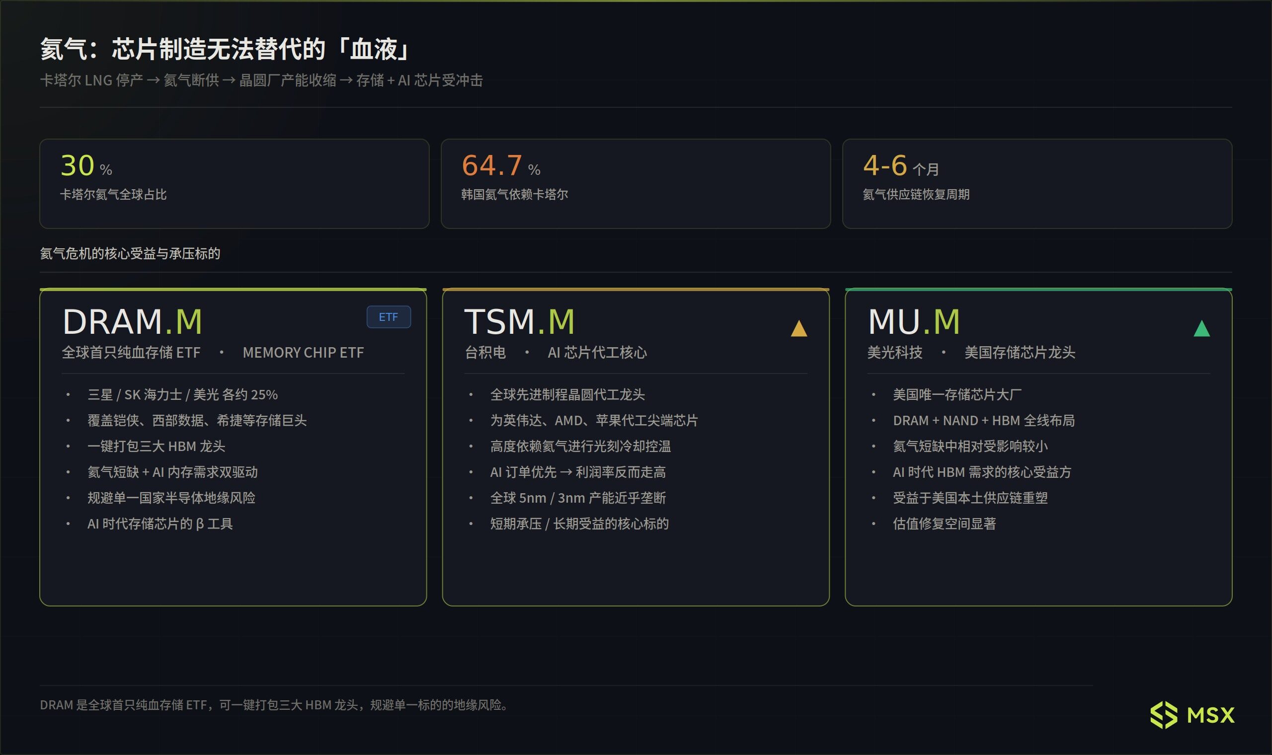 其中 MSX 已上线的 DRAM.M、TSM.M、MU.M,刚好对应这条链上的几个关键观察点: