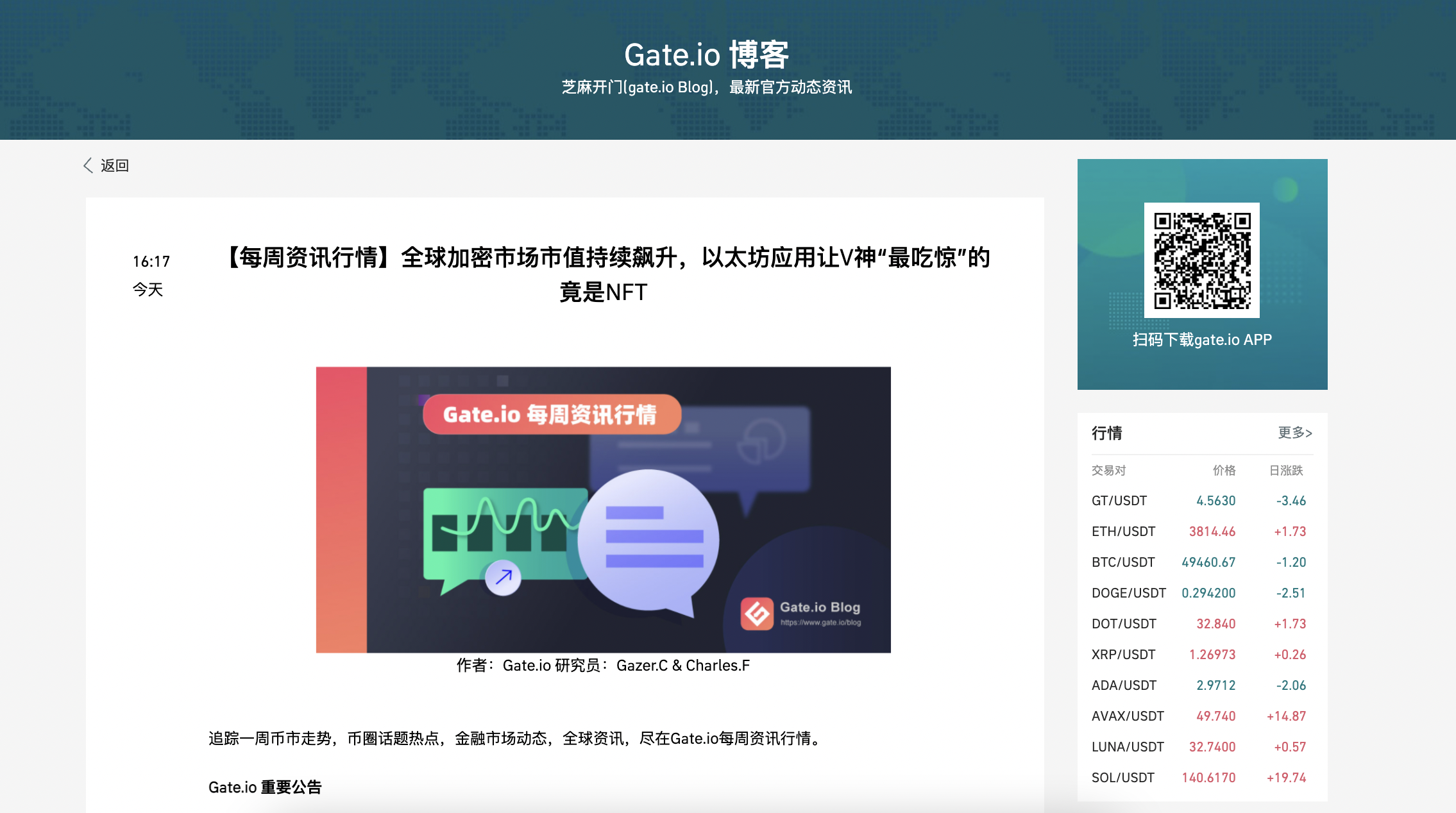 博客入口:Gate.io网站首页最下方“关于——Gate 博客”