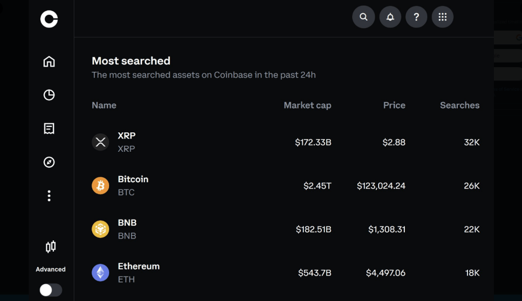 Bitcoin Who? XRP Leads Coinbase Search Charts, Beating The Giants