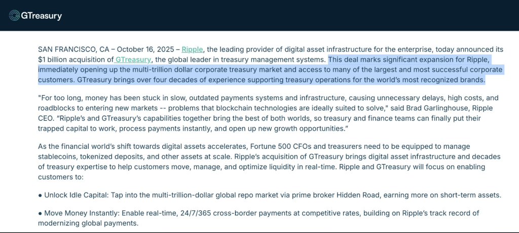 Ripple just acquired GTreasury for $1B