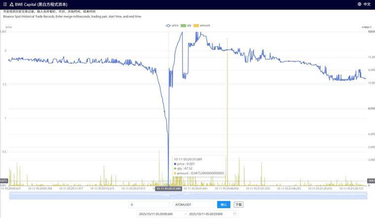 方程式新闻创始人 Vida 在昨日下午 发推称 ,通过其记录的币安实时推送的订单簿和成交记录来看,ATOM/USDT 交易对确实因为成交订单而在 0.001 USDT 的价格停留了 8 毫秒,且成交了 47.52 枚 ATOM。IOTX 则是在极低的价格上成交了 1.1 亿枚,且 Vida 猜测可能是某个使用 IOTX 当作杠杆交易保证金机构的统一账户爆仓导致价格的异常。
