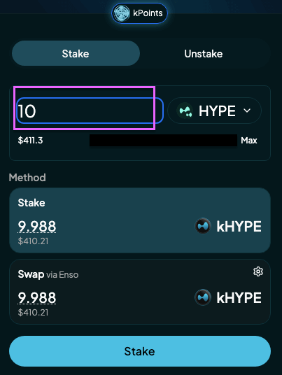 KinetiqでHYPEをステーキング(LST=kHYPEを受け取る)