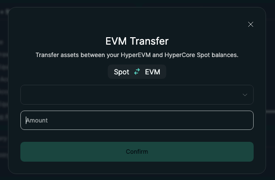 ②EVMへ変換するHYPE数量を入力し、Confirm をクリック