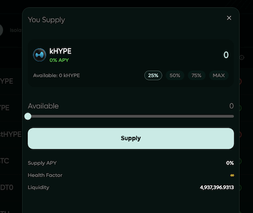 次の工程で、この kHYPE(LST)をHyperlendへ預け入れて運用します。