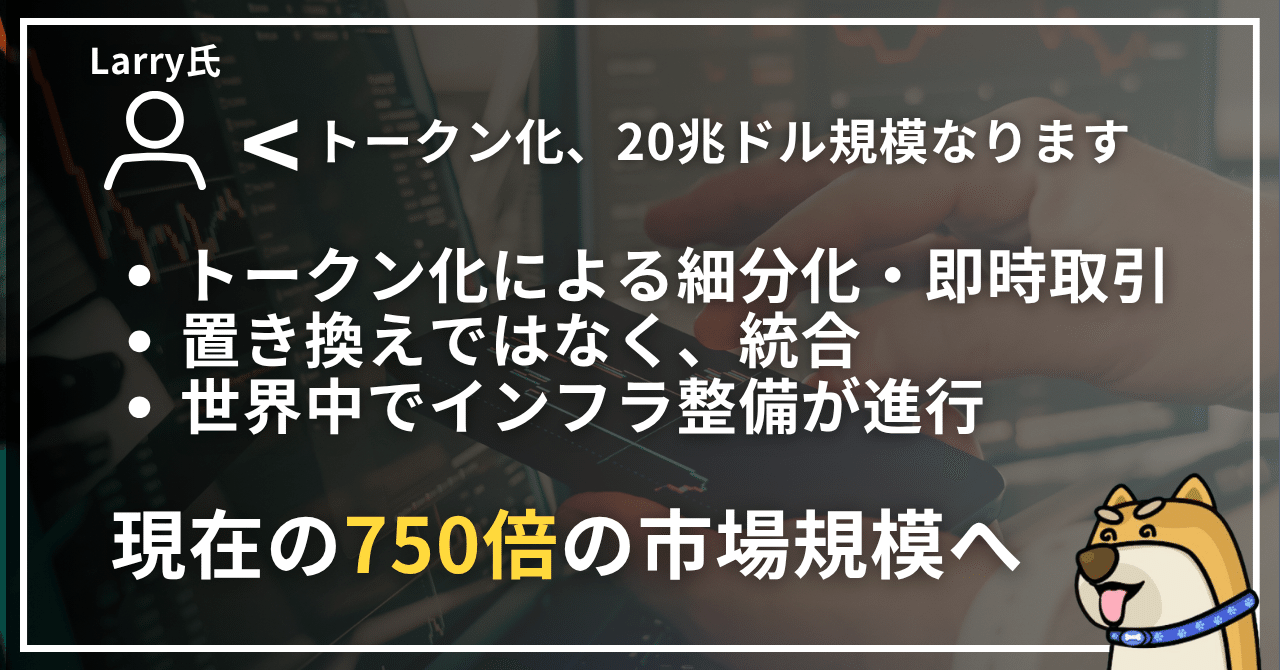 今週の最大のトピックは、 BlackRock CEO Larry Fink氏のトークン化に関する力強いメッセージ です。