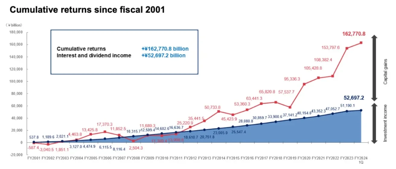 GPIF 表现强劲,在过去十年更是如此。过去十年发生的事情是,日元大幅贬值。随着日元的贬值,外国资产的回报率飙升。