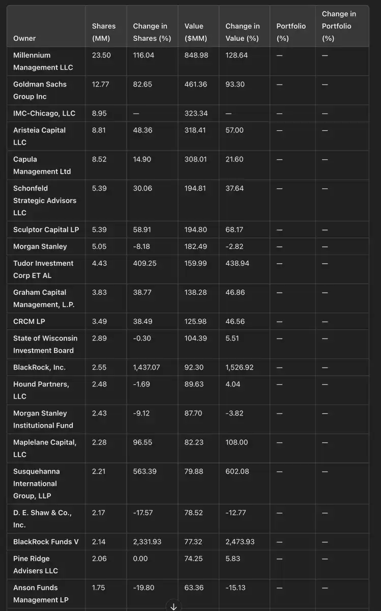 IBIT(iShares Bitcoin Trust ETF)的頂級機構持有者