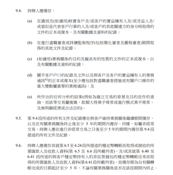 在《打击洗钱及恐怖分子资金筹集指引(持牌稳定币发行人适用)》中,金管局要求持牌稳定币发行人采取有效措施识别和核实稳定币持有人的身份,客户需接受完整的客户尽职审查(CDD)程序并定期审查(如姓名、出生日期、身份证件号码等,至少保留 5 年),非客户持有人通常不需直接核实身份,但当监控发现与非法活动、制裁名单或可疑来源相关的钱包地址,且持牌人无法证明其风险缓解措施(如区块链分析工具)足以防范 ML/TF 风险时,持牌人需进一步调查并核实相关持币者的身份。