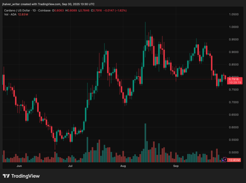 At the time of writing, Cardano is floating around $0.79, down almost 4% over the last seven days.