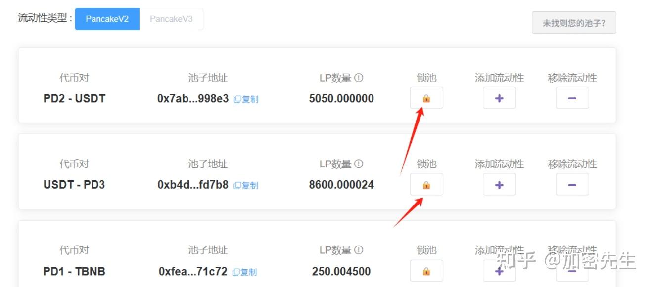答:锁池,就是将流动性凭证LP锁住,其目的在于无法撤池子。用户害怕你撤出流动性跑路,所以让你锁池。等到池子解锁,再撤出。不过这个概念在Solana上也叫烧池子,烧了之后就永远不能撤出了。不管是锁池还是烧池子,其目的都是为了防止项目方跑路。如果你需要锁池,那么可以使用PandaTool的锁工具来实现。(注意,锁池或者烧池不影响代币交易,池子依然存在.