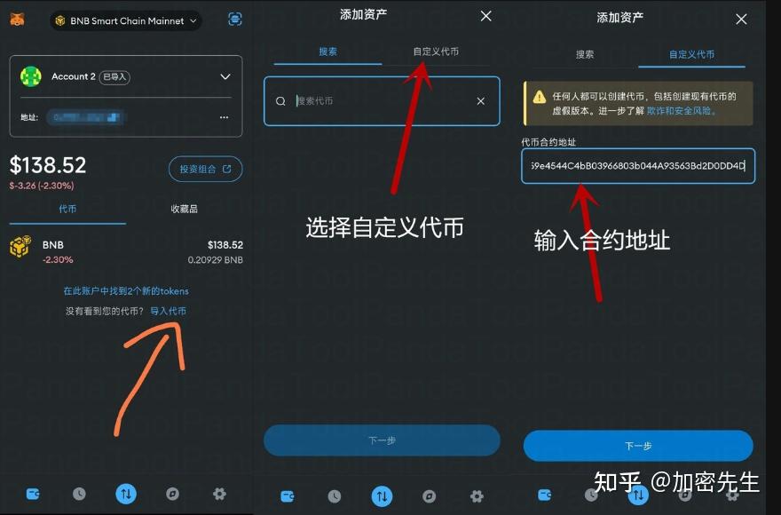 - 资产(代币):钱包软件会生成钱包地址,钱包地址里要有相关的资产,以支付发币费用。例如你要在BSC链发币,钱包里至少得有0.06个BNB