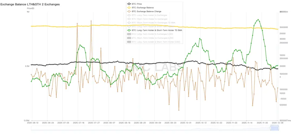 11月21日,随着美联储主席约翰·威廉姆斯表态“近期存在进一步降息空间”,美股及BTC触底反弹。此后,美三大股指逐渐修复失地逼近历史前高。而BTC在上周反弹4.1%之后再次失速,进入震荡态势。根本原因在于流动性依然处于极度匮乏状态,而买卖双方行为未能真正扭转所致。