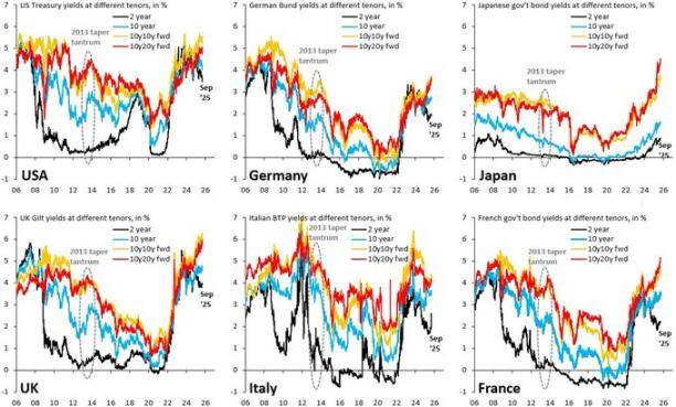 今年早些时候,当市场因财政担忧导致美国长期国债收益率飙升时,我们已经尝到了滋味。汇丰自己也指出,关于「财政轨迹恶化」的叙事在相关预算讨论时期达到顶峰,随后随着美联储转向担忧增长而消退。