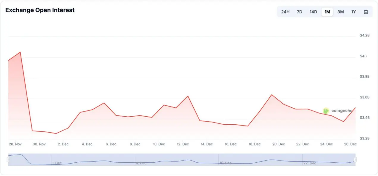 与中心化交易所的差距依然显著。Deribit 在全球范围内占据主导地位,每日未平仓合约超 30 亿美元。