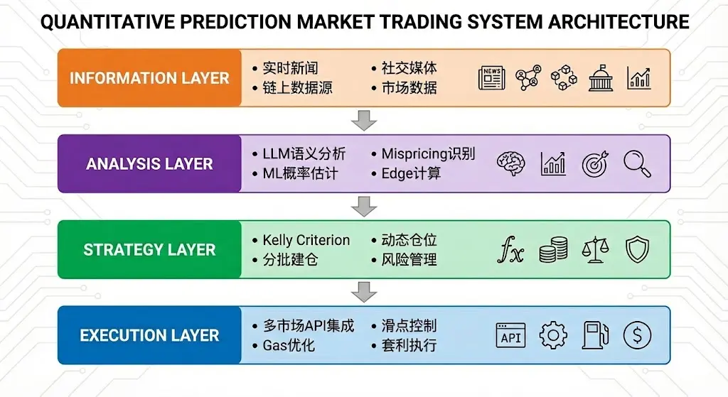 理想的 预测市场智能体 可抽象为 四层架构 :