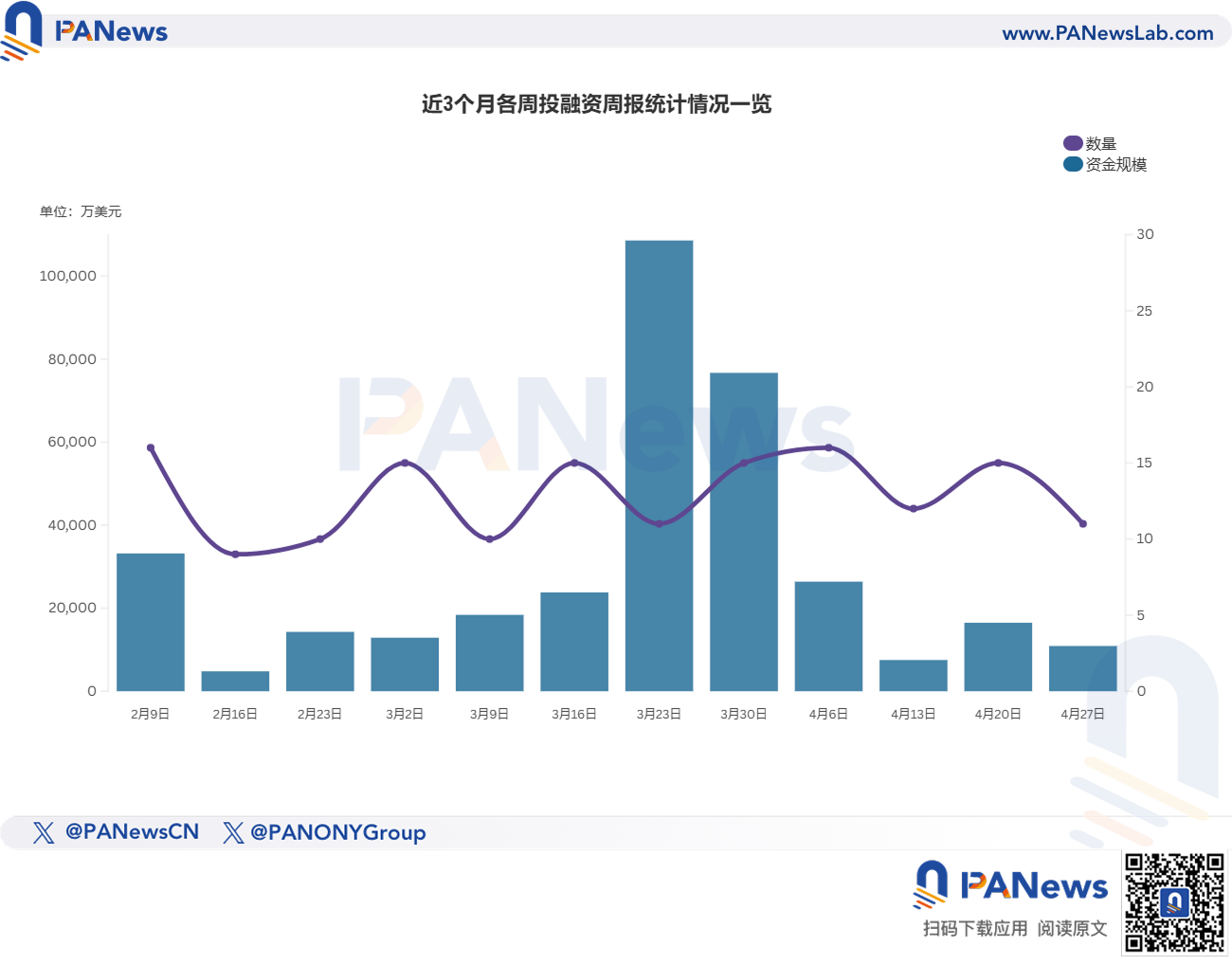 据 PANews 不完全统计,上周(4.20-4.26)全球区块链有11起投融资事件,资金总规模超1.01亿美元,概览如下:
