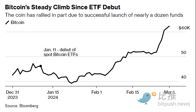 近日,比特币价格强劲上涨,部分得益于近十只相关基金的成功推出。