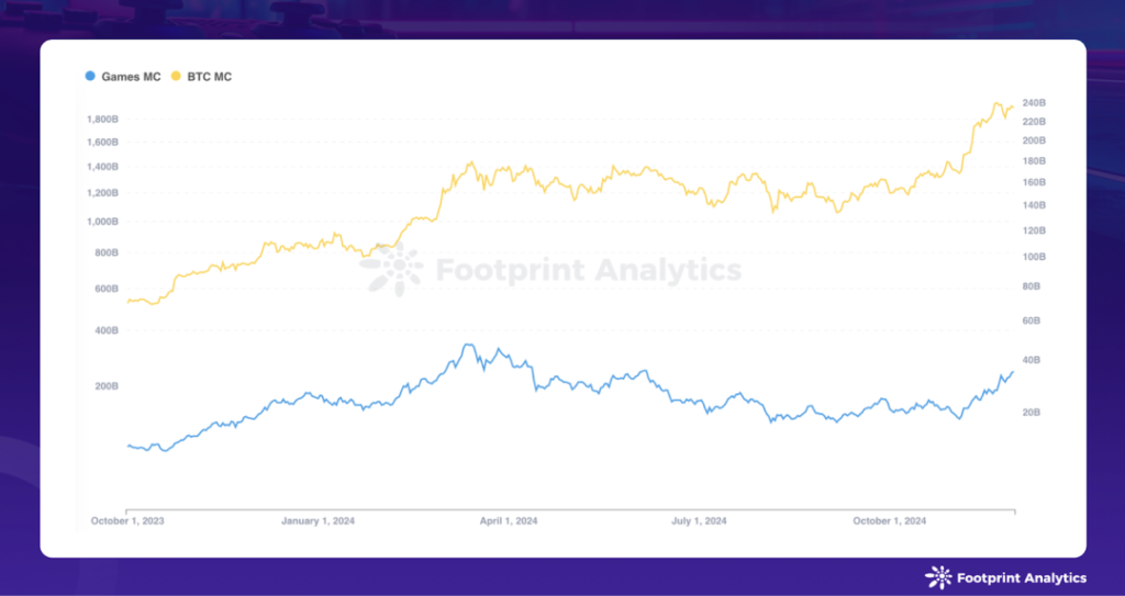 2 024 年 11 月 Web3 遊戲行業市場增長顯著但大規模採用策略仍在演進。隨著比特幣創下歷史新高並接近 10 萬美元里程碑,遊戲板塊市值大漲 79.1% 至 351 億美元。儘管傳統指標表現亮眼,日活躍使用者達到 550 萬,但該行業在區塊鏈整合和大規模採納方面仍面臨著一些問題。