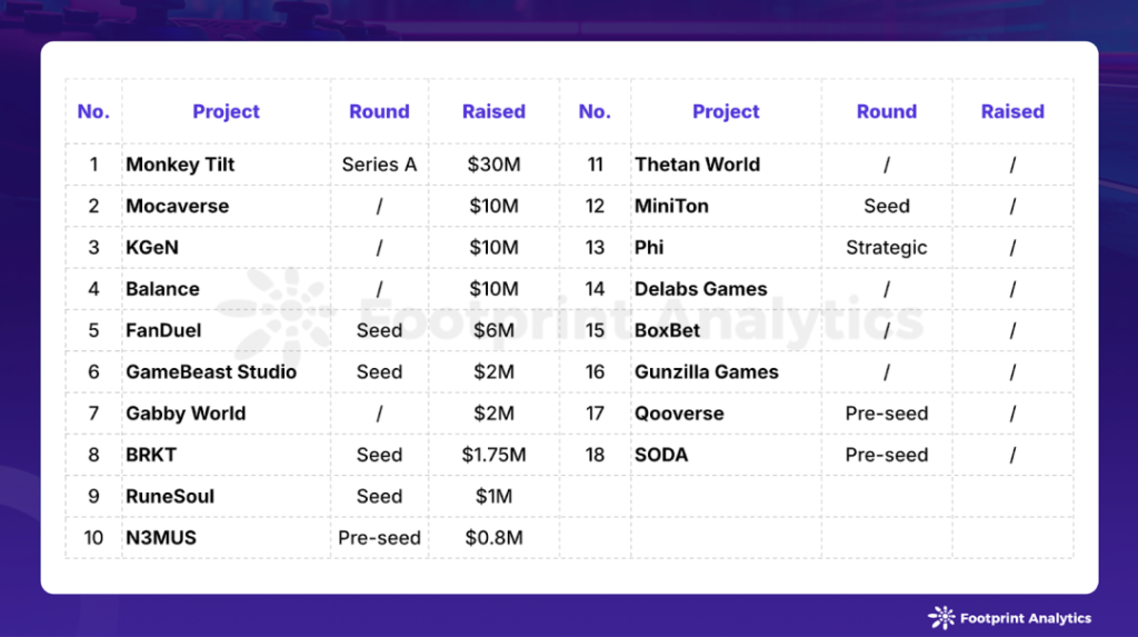Monkey Tilt 以 3,000 萬美元的 A 輪融資領跑本月融資,由 Pantera Capital 領投。該平臺結合遊戲、娛樂和博彩功能,自 3 月推出以來實現了 2 億美元的月度投注量。