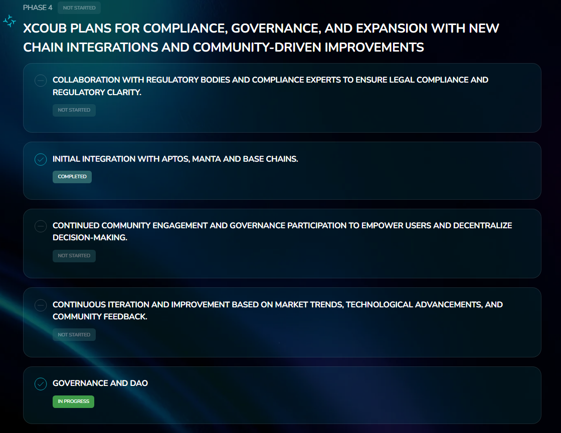 Xcoub 不仅仅是一个质押平台,更是推动 DeFi 创新的先锋。未来规划包括: