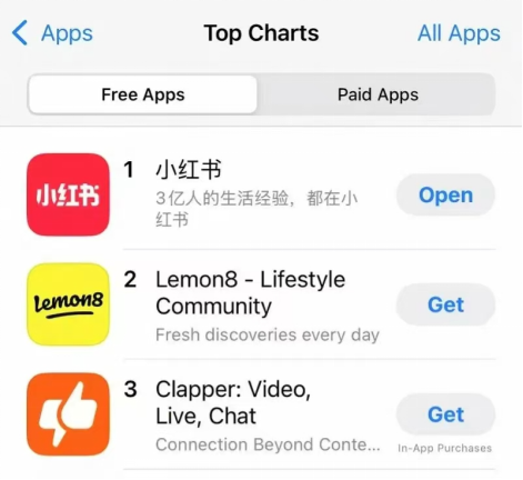 一大波的网民以“TikTok难民”之名揭竿而起,顺着网线来到小红书,真正实现了文化间的交流与碰撞。1月13日,小红书的下载量飙升至苹果美区应用商店首位。15日晚间,小红书在87个国家登上APP Store免费排行榜第一。而在小红书,“#tiktokrefugee”(TikTok难民)这个标签的话题浏览量已经暴涨到4.6亿,937万讨论,笔记36万条,且持续处于上涨态势。
