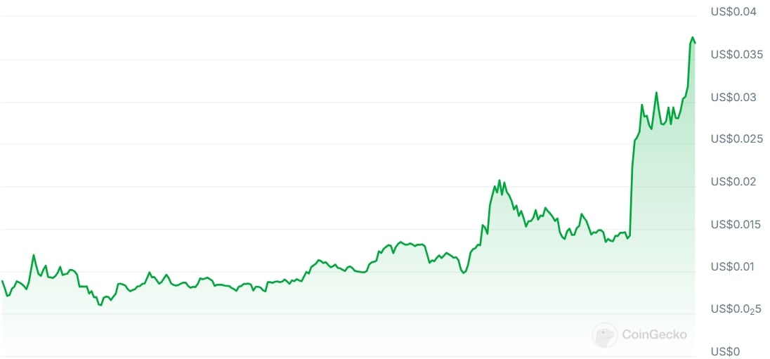 另一方面,因為受到 CZ 轉發而爆紅的代幣 TUT 因上線 Binance Alpha,幣價短時也漲超 70%。根據 CoinGecko 數據 ,TUT 幣價原先在 0.006 美元至 0.036 美元,Alpha 2.0 推出後交易量大增,幣價飆升至 0.036 美元。