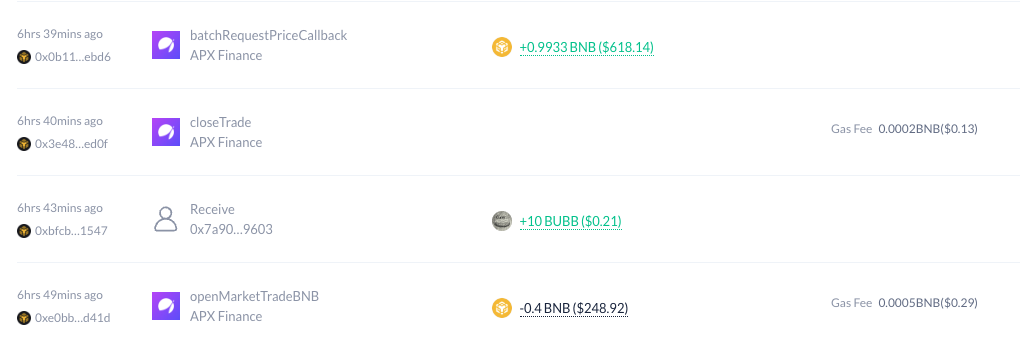CZ 在鏈上交易所 APX 開倉 Mubarak 合約多單
